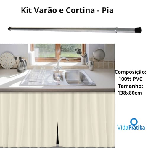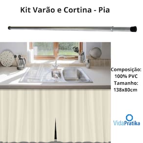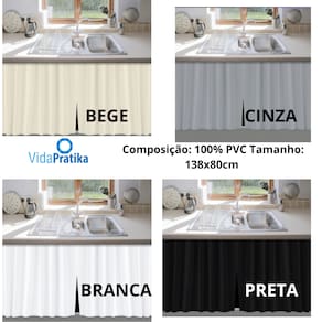 Ótimo para você que gosta de manter sua cozinha organizada, facilidade na limpeza e ainda decorar o ambiente para ficar aquele aconchego? Nós temos a solução para você, nossa cortina para pia feita 100%PVC foi desenvolvida especialmente para você dar aquele toque especial na sua cozinha sem perder a praticidade na limpeza. Caracteristicas Técnicas: Composição: 100% Poliéster Tamanho: 138x80cm Marca: VIDAPRATIKA