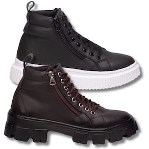 Kit Coturno Feminino Preto Para Um Estilo Urbano + Coturno Feminino Tratorado Marrom. - 36 - Marrom