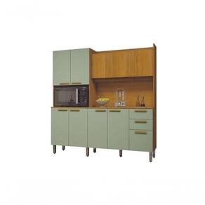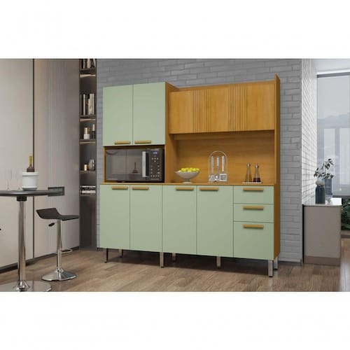 Kit Cozinha 10 Portas 2 Gavetas - Jean-Cinamomo/Verde Menta - CHF Móveis