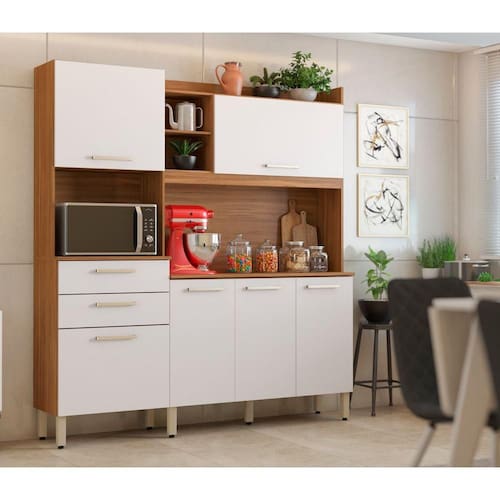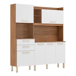 Informação do Produto Que tal este lindo armário para deixar a sua cozinha mais estilosa e organizada, e os seus utensílios bem acomodados. Projetado para grandes ambientes consegue ser versátil, prático e ao mesmo tempo robusto/grande, possui excelente espaço interno para armazenamento; com 6 portas, sendo uma superior com pistão a gas e duas amplas gavetas com corrediça metálica, 3 prateleiras internas e ainda possui pés reguláveis. Com este armário a sua cozinha vai ficar mais linda e aconchegante. Dimensão do Produto: Altura: 194,5cm Largura: 178cm Profundidade: 38,5cm Peso: 69,8kg