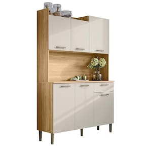 O Armário Kit Cozinha é perfeito para quem busca pde e estilo na organização do ambiente. Produzido em MDP de 12mm e 15mm, conta com 06 portas e 01 gaveta, equas com dobradiças e corrediças metálicas. O design conta com puxadores ergonômicos e pés fixos, ambos em plástico resistente, além de nichos decorativos e prateleiras internas. Com pintura UV (fosco ou semibrilho), o acabamento do móvel oferece maior proteção, realce nas cores e facilidade na limpeza do dia a dia. Este móvel chegará em sua casa separado em 02 volumes.