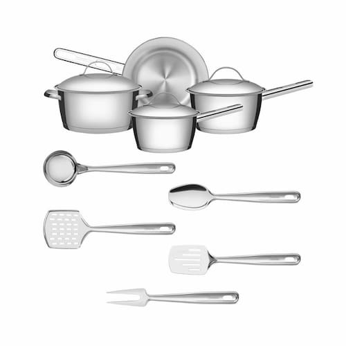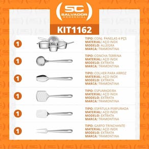 Kit Cozinha Allegra Aço Inox Fundo Triplo 9 Peças Com Utensílios - Tramontina