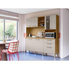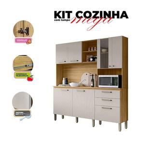Começou a montar sua cozinha? Apresentamos para você este belo kit de cozinha da linha Mega. Contando com sete portas, uma sendo em vidro. Possui duas gavetas com corrediças telescópicas, proporcionando mais suavidade ao abrir e fechar. Outro destaque é o nicho para micro-ondas, otimizando o espaço. Completado por três nichos menores para acomodar seus itens. Com tampo incluído, oferece um ótimo espaço para acomodar seus acessórios. Os puxadores em poliestireno, e os pés reguláveis em polipropileno, permite manter a cozinha nivelada. Desenvolvido em MDP, é fabricado pela Kits Paraná sendo a solução perfeita para quem deseja renovar a cozinha com estilo, praticidade e elegância. Confira e aproveite!