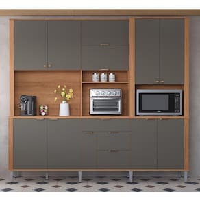 Kit Cozinha 2,40m Lukaliam Móveis Compacta Astra 10 Portas e 4 Gavetas