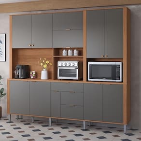 10 portas com prateleiras internas, ideais para utensílios, louças e mantimentos