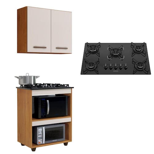 Conteúdo da embalagem: 01 Armario e Manual de Montagem 01 FOGÃO COOKTOP ULTRA CHAMA 5 BOCA 01 Balcão e Manual de montagem