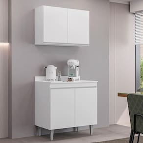 O Balcão Ellen com o Aéreo Isis, não dispensam qualidade e resistência indispensável para sua cozinha. Vendida por módulos, permite que você explore sua criatividade escolhendo dentre as diversas opções o que mais se adapta ao seu gosto de espaço. O Balcão e o Aéreo são feitos em MDP 15mm da melhor qualidade, com acabamento em BP, que é muito mais resistente, e confere uma proteção extra ao seu móvel! Escolha o melhor para sua cozinha.