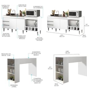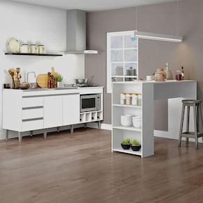 Kit Cozinha Balcão Para Pia Cooktop Ilha Mdp Menu Móveis Branco O Kit Cozinha Compacta sao moveis uteis e versateis perfeitos para completar o seu ambiente. Dispoe de um design atual que facilita na hora de montar a decoracao, proporcionando um espaco mais organizado e sofisticado. Produzido com materiais de excelente qualidade, garantindo a durabilidade e vida util do movel. O melhor em moveis no design atual aliando conforto, qualidade e otimos precos! Caracteristicas da Bancada: Produzido em MDP de 15 mm Acabamento em UV Prateleiras