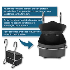 Esta barra é versátil e funcional, pois acompanha 6 ganchos, podendo então armazenar os utensílios (garfos, conchas e colheres que possuem furação no cabo) diretamente nos ganchos, bem como suporta outros itens desta linha, que encaixam facilmente na barra e auxiliam a compor um ambiente organizado e harmonioso.