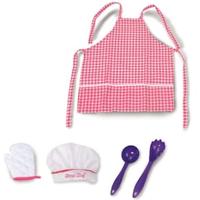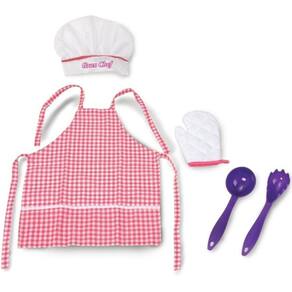 Kit Cozinha Brinquedo Faz de Conta Gran Chef Avental Infantil + Chapéu Rosa Com Colherzinha