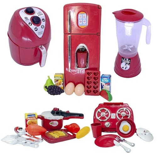 O kit infantil cozinha chefe geladeira air fryer cooktop 26pç é perfeito para incentivar a criatividade e imaginação das crianças na hora de brincar de cozinhar. Com ele, os pequenos vão se divertir preparando deliciosas refeições como verdadeiros chefs. O kit conta com uma geladeira com comidinhas, uma air fryer, um fogão cooktop com louças e panelinha, um liquidificador e uma panelinha de pressão com acessórios. A geladeira tem aproximadamente 38cm de altura e 15cm de largura. Além disso, ela vem com uma forminha, frutinhas, ovo e duas caixas de suco. A air fryer possui cerca de 13cm de altura e 9cm de largura, e conta com uma gaveta removível para facilitar o uso. O fogão cooktop tem 21cm de comprimento e 15cm de largura, enquanto a panelinha possui 12cm de largura e 5cm de altura. O kit também inclui um prato de 10cm de largura e 10cm de altura, um copo de 6cm de altura e 4cm de largura, um garfo de 8cm de altura e 3cm de largura, e uma faca de 8cm de altura e 3cm de largura. O liquidificador tem aproximadamente 17cm de altura e 9,5cm de largura. As panelinhas têm 12cm de largura e 5cm de altura, e vêm com 8 acessórios. Esse kit é recomendado para crianças maiores de 3 anos, pois contém partes pequenas que podem ser engolidas. As imagens foram fotografadas pela equipe click compras e são de uso exclusivo da mesma. O uso não-autorizado das imagens está sujeito a sanções previstas em lei de direitos autorais. O produto possui certificado pelos órgãos autorizados e está de acordo com as normas de segurança. Deixe a imaginação das crianças fluir com o kit infantil cozinha chefe geladeira air fryer cooktop 26pç. Com ele, elas vão se sentir verdadeiros chefs de cozinha e se divertir muito preparando diversas refeições.