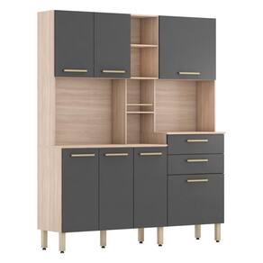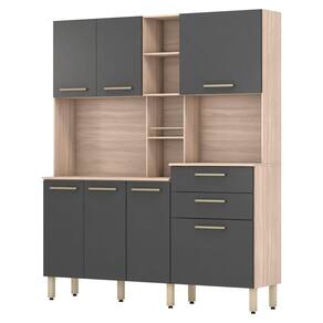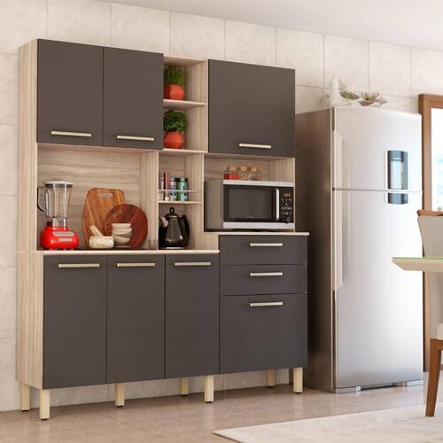 Informação do Produto: Essa cozinha é uma facilitadora na hora de organizar a sua cozinha. NAO necessita furar a parede, acompanha pés com regulagem de altura, possui uma estrutura totalmente em MDP de alta qualidade, aumentando a durabilidade, resistência e qualidade do produto. Possui 2 gavetas grandes com corrediças metálicas, diversas prateleiras internas, 7 portas com puxadores champanhe são modernos e resistentes, espaço para microondas nichos e um belíssimo porta temperos garantem o visual moderno e elegante. Dimensão do Produto: Altura: 194,5cm Largura: 163,5cm Profundidade: 41cm Peso: 68,65kg