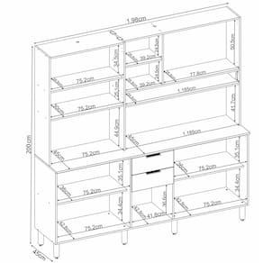Dimensões do Kit Cozinha Compacta 10 Portas 2 Gavetas Ruby: