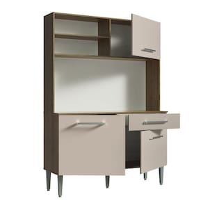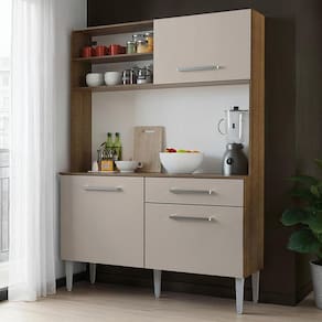 Perfeita em apartamentos e casas que precisam de total otimização do espaço, a cozinha é composta por materiais de ótima qualidade, como puxadores com alumínio, corrediçase dobradiças metálicas e pés em PVC.