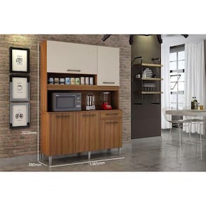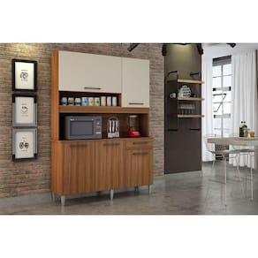Kit Cozinha Compacta 5 Portas Esmeralda Carvalho/Off - Marrom