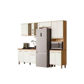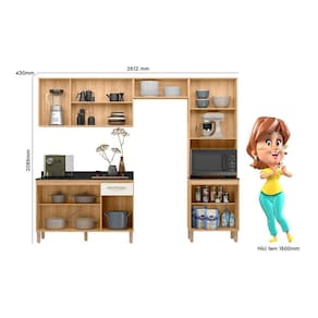 Sua estrutura é em MDP de 15 milímetros, pintura UV, possui corrediças telescópicas e espaço para micro-ondas. Acabamento da Prateleira: Pintura UV Escala de Brilho da Prateleira: Semi-Brilho Acabamento da Gaveta: Pintura UV Escala de Brilho da Gaveta: Semi-Brilho Material do Puxador da Gaveta: Poliestireno Acabamento da Porta: Pintura UV Escala de Brilho da Porta: Semi-Brilho Material do Puxador da Porta: Poliestireno Acabamento dos Pés: Polipropileno Acompanha Tampo: Sim Ambiente Principal: Cozinha codigo_ean: 7909903491416 Complexidade da Montagem: Alta: deve ser montado por um montador especializado Cor: Freijó/Off White Cristal Cor do Produto: Freijó/Off White Cristal Cor Interna: Freijó Escala de Brilho: Semi-Brilho Espessura do Material da Estrutura: 15 mm Espessura do Tampo: 12 mm Gaveta com Chave: Não Itens Inclusos: Cozinha, Balcão, Kit Ferragens e Manual de Montagem Manual de Especificação Técnica: https://product-hub-prd.madeiramadeira.com.br/880230/documents/4ab47262-9295-45d6-8cf3-bbc955c5c6fahafit2023esquemademontagem.pdf Manual de Montagem e Instalação: https://product-hub-prd.madeiramadeira.com.br/880230/documents/65f0fc6d-c95d-4326-a72e-e41ad4f704facaofit120esquemademontagem.pdf Material da Dobradiça/Corrediça da Porta: Metálica Material da Gaveta: MDP Material da Porta: MDP Material da Prateleira: MDP Material do Fundo: MDF Material do Tampo: MDP Material dos Pés: Polipropileno Medida de cada item (A x L x P): Cozinha: 206 X 251,2 X 43 - Balcão: 85,7 x 120 x 43 modular: Não Necessita Montagem: Sim O Balcão Acompanha Pia: Não Origem do Produto: Nacional Pés Reguláveis: Sim Peso: 92,06 kg Peso Máximo por Gaveta: 8 kg Peso Máximo por Prateleira: 8 kg Possui Pés: 09 Possui Portas: Sim Possui Prateleiras: Sim Possui recorte para Cooktop: Não Possui Rodízio: Não Possui Vidro: Sim Produto Montado: Sim Recomendações de Uso, Manutenção e Limpeza: Limpar com flanela ou pano macio seco, não utilizar produtos abrasivos, desengordurantes, álcool ou Sapatas Niveladoras: Sim Sistema de Montagem: Sim Suporta Até (kg): 8 kg Tamanho Indicado da Pia: Não Tipo de Corrediça da Gaveta: Metálica Telescópica Tipo de Dobradiça da Porta: Simples Tipo de Puxador da Gaveta: Externo Tipo de Puxador da Porta: Externo