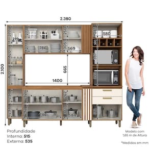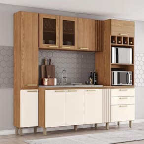 O(a) Kit Cozinha Compacta Nature/Off White é produzido em Frentes: MDP 15mm/MDF 15mm