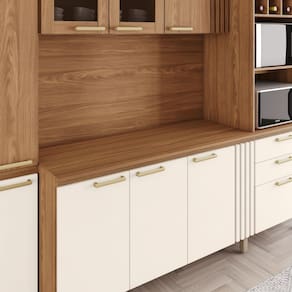 KIT COZINHA BC01 DIFERENCIAIS Garrafeiro Vidro reflecta Caixa e frente de MDP 15 mm Puxadores em ABS 02 Gavetas com Corrediças Telescópicas Detalhes Ripados Tampo 1.200 mm TAMANHO A: 2100 X L: 2380 X P: 535 MM Grantia: 90 dias. Montagem: Montagem, desmontagem e outras instalações serão de responsabilidade do cliente. Não nos responsabilizamos, no ato da entrega, por subir escadas/elevadores ou pelo transporte por guincho em apartamentos. Eventuais despesas são de responsabilidade do comprador; Observações importantes: A tonalidade da cor do produto pode variar de acordo com a sua tela, a iluminação do ambiente ou sua percepção visual. Lembrando que são fotos ilustrativas tratadas em estúdios podendo haver pequena diferença nas cores. A montagem será de responsabilidade do comprador; Não nos responsabilizamos, no ato da entrega, por subir escadas/elevadores ou transporte por guincho em apartamentos. Eventuais despesas são de responsabilidade do comprador; Confira as dimensões deste produto e certifique-se de que passará normalmente por supostos elevadores, portas, escadas e/ou corredores de sua residência; Para mais informações, acesse nossa Central de Atendimento. Marca: LM DECOR