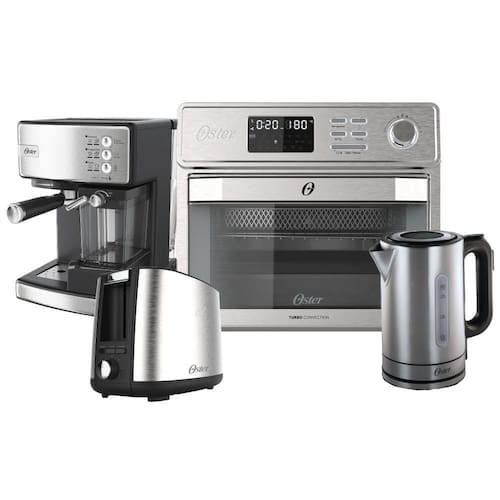 Itens Inclusos: Forno OFOR250, Cafeteira PrimaLatte Inox, Chaleira Digital Inox BVSTKT8970, Torradeira OTOR600