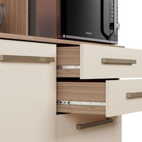 Apresentamos um móvel em MDP com gavetas de corrediças metálicas e puxadores modernos. Ele é projetado para acomodar micro-ondas de até 38 litros e possui pés reguláveis. Seu amplo espaço interno proporciona organização eficiente. Ideal para cozinhas contemporâneas.