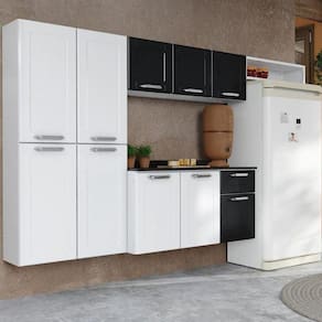 Balcão 3 Portas 1 gaveta Com Tampo Dona Maria Preto e Branco Bertolini