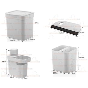- Dimensões da Lixeira: 16,5cm (C) x 14,5cm (L) x 17cm (A)
