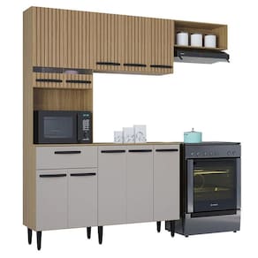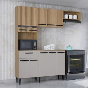 Kit Cozinha Dora Com Balcão Damasco Ripado Off White - Poquema