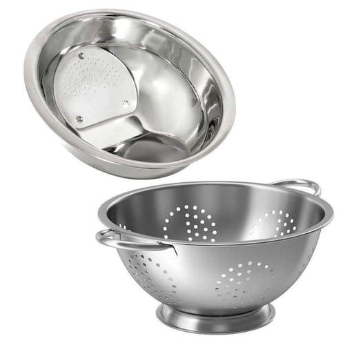 Características do Produto: -Escorredor de Arroz 25cm: Ideal para enxaguar e escorrer arroz de forma eficiente, garantindo grãos soltos e perfeitamente cozidos em todas as suas receitas favoritas. -Escorredor de Macarrão 28cm: Perfeito para escorrer macarrão, legumes e outros alimentos cozidos, facilitando o preparo de deliciosas massas e saladas. -Construção em Aço Inox: Duráveis e resistentes, os escorredores são feitos de aço inoxidável de alta qualidade, garantindo durabilidade e fácil limpeza. -Design Prático: Os escorredores possuem alças ergonômicas que oferecem uma aderência confortável e segura, facilitando o manuseio durante o uso. -Versatilidade na Cozinha: Além de escorrer arroz e macarrão, esses utensílios são úteis para diversas tarefas na cozinha, como lavar frutas, legumes e folhas verdes.