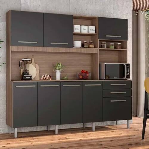 Kit Completo Madeira 2,13 Ibiza Montana Grafite para Cozinha é o móvel completo para sua cozinha.Produzido em MDP, possui portas articuladas, gavetas corrediças metálicas e acabamento fosco.Com ótimos compartimentos internos para organizar seus utensílios, possui oito portas e duas gavetas para melhor organização e também conta com uma estrutura tradicional que irá se encaixar perfeitamente no ambiente e combinará com outros móveis.Gavetas com corrediças metálicasPuxadores com design modernoEspaço para microondas até 38LPés reguláveis Marca: Não Informado