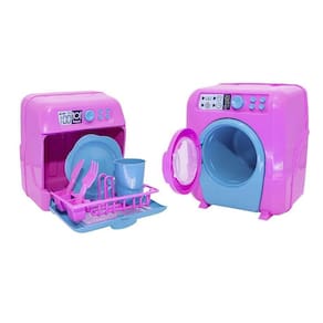 Esse kit possui air fryer, batedeira, liquidificador, cafeteira, máquina de lavar roupa, máquina de lavar louça, fogão com panelinhas