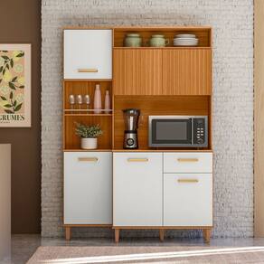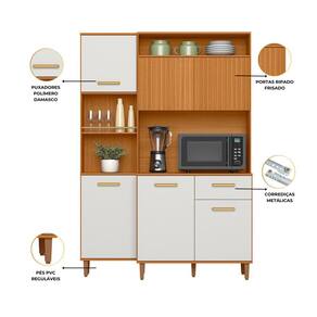 O Kit Cozinha July Poliman ? a escolha ideal para quem busca praticidade, funcionalidade e um design sofisticado. Com 6 portas, destaca-se pelo elegante detalhe ripado nas duas portas superiores, que adiciona um toque moderno e refinado ao ambiente.