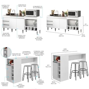 Dimensoes do Balcao: Altura: 81,5 cm Largura: 182,5 cm Profundidade: 52 cm Peso: 47 kg
