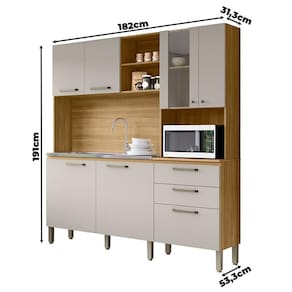 Está montando sua cozinha? Apresentamos para você este belo kit cozinha da linha Mega. Com sete portas, sendo uma delas com vidro, dando elegância. Possui duas gavetas com corrediças telescópicas garantindo um deslizamento suave. Equipado com um nicho micro-ondas, três nichos para acomodar itens menores, e espaço para acomodar cuba de pia. Os puxadores em poliestireno e os pés reguláveis são em polipropileno, proporcionando mais durabilidade. Desenvolvido em MDP, é fabricado pela Kits Paraná, perfeito para quem busca praticidade e funcionalidade. Confira e aproveite!