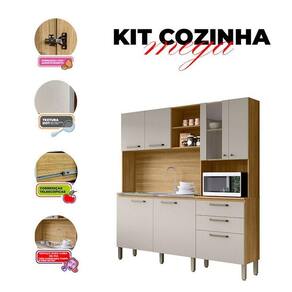 Está montando sua cozinha? Apresentamos para você este belo kit cozinha da linha Mega. Com sete portas, sendo uma delas com vidro, dando elegância. Possui duas gavetas com corrediças telescópicas garantindo um deslizamento suave. Equipado com um nicho micro-ondas, três nichos para acomodar itens menores, e espaço para acomodar cuba de pia. Os puxadores em poliestireno e os pés reguláveis são em polipropileno, proporcionando mais durabilidade. Desenvolvido em MDP, é fabricado pela Kits Paraná, perfeito para quem busca praticidade e funcionalidade. Confira e aproveite!
