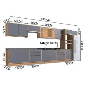 Kit Cozinha Modulada 14 Peças Versalis 1 (6Aéreos+4Balcões+1TorreQuente+3Complementos) C14P166 Freijo/Grafite-Herval - Cinza
