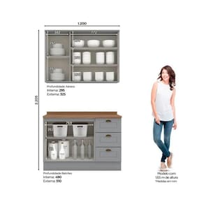 Kit Cozinha Modulada 3 Peças Americana (1aéreo+1balcão+1complemento) Cz121 Cinza - Henn