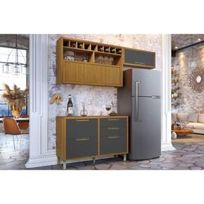 Kit Cozinha Modulada 3 Peças Imperatriz (2Aéreos+1Balcão) C6P45 Freijo/Grafite - Nesher