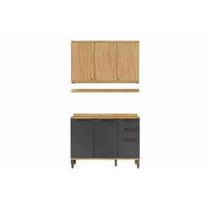 Kit Cozinha Modulada 3 Peças Sauvignon (1Aéreo+1Balcão+1Complemento) C3P46 Amendoa/Grafite - Ronipa - Grafite | Marrom