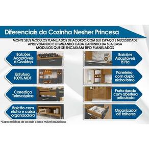 Kit Cozinha Modulada 4 Peças Princesa (1Aéreo+2Balcões+1Paneleiro) C6P59 Freijo/Grafite - Nesher