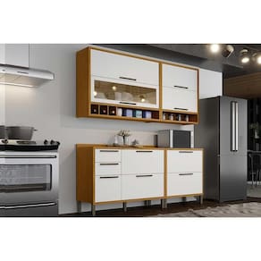 Cozinha Completa Syrah 4 Peças (2Aéreos+2Balcões) C4P04 Amendoa/Branco - Ronipa