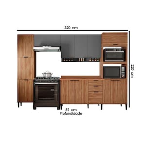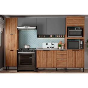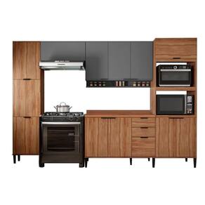 Cozinha Completa Alpha 5 Peças (2Aéreos+1Balcão+1Paneleiro+1TorreQuente) C5P98 Freijo/Cinza - Carraro