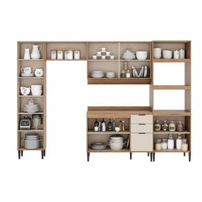 Kit Cozinha Modulada 5 Peças Alpha (2Aéreos+1Balcão+1Paneleiro+1TorreQuente) C5P98 Freijo/Cinza - Carraro - Blush