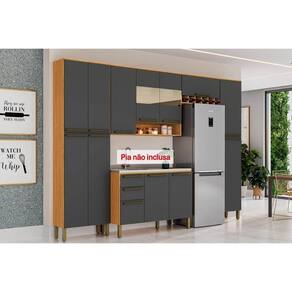 Cozinha Completa Nápoli Prime 5 Peças (2Aéreos+1Balcão+2Paneleiros) C5P96 Amendoa/Grafite - Ronipa