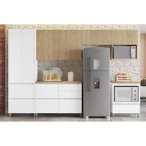 Kit Cozinha Modulada 6 Peças Rainha Gourmet (3Aéreos+1Paneleiro+2Balcões) C6P39 Branca/Nature - Nesher - Blush