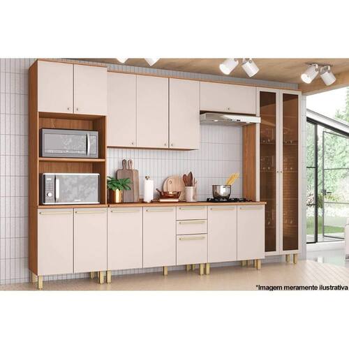 Cozinha Completa Requinte 8 Peças (2Aéreos+2Balcões+2Paneleiros+2Complementos) CZ100 Nature/Areia - Henn