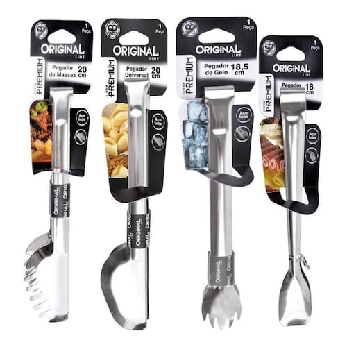 Kit Cozinha com 4 pegadores em Inox:1 Salada 20cm1 Para Frios 18cm1 Para Gelo 18,5cm1 Para Massas 20cm--------------------- BIG BOOST ------------------------Kit Cozinha Pegador Salada / Gelo / Frios / Massas/UniversalKit Cozinha com 5 pegadores em Inox: 1 Para Carnes 12,5cm 1 Para Frios 18cm 1 Para Gelo 18,5cm 1 Para Massas 20cm 1 Para Saladas 20cm