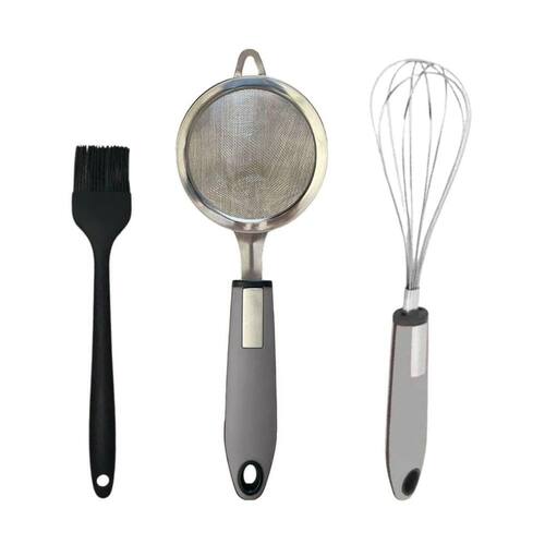 Kit Cozinha - Pincel de Silicone Peneira em Inox e Batedor Cinza Kit de Utensílios para Cozinha - Pincel de Silicone, Peneira de Aço Inox e Batedor Fouet Aplicação: Perfeito para quem busca praticidade e funcionalidade na cozinha, esse kit reúne três utensílios essenciais para o preparo de receitas doces e salgadas. Ideal para uso doméstico ou . Itens Inclusos: 1 pincel de silicone resistente ao calor, ideal para untar formas ou pincelar molhos e temperos; 1 peneira com malha fina em aço inox, ideal para peneirar farinhas, açúcar ou coar líquidos; 1 batedor fouet com arame de aço inox, excelente para misturar massas leves, ovos e molhos. Dicas de Uso: Utilize o pincel de silicone para aplicar ou calda em massas com facilidade. A peneira é perfeita para evitar grumos em suas receitas. O fouet proporciona misturas homogêneas com rapidez e leveza. Cuidados e Manutenção: Lave os utensílios com água e sabão neutro após o uso. Evite esponjas abrasivas. Todos os itens são fáceis de limpar e podem ser pendurados para melhor organização. Marca: Não Informado Ean: 7909463714994