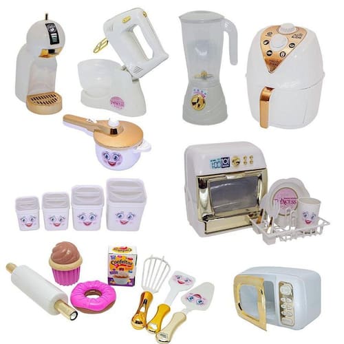 Kit cozinha princesa doce louça panela pressão batedeira 23p ---- loja oficial do click compras na internet---- Somos um dos melhores vendedores do site, nossa missão é atender com amor e carinhoNossos clientes, oferecendo sempre o melhor atendimento e produtos de excelência. SãoMilhares de produtos entregues e clientes satisfeitosProduto em estoque Esse kit contém air fryer, batedeira, cafeteira, liquidificador, lava louça com escorredor e louça, utensílios com docinhos, potinhos de mantimentos, microondas, panelinha de pressão - 1 air fryer de aproximadamente 13cm de altura x 9 cm de largura com gaveta removível--------------------------------------------------------------------------------------------- - 1 batedeira de aproximadamente 15 cm de altura x 12 cm de largura--------------------------------------------------------------------------------------------- - 1 liquidificador de aproximadamente 17 cm de altura x 9,5 cm de largura--------------------------------------------------------------------------------------------- - 1 cafeteira de aproximadamente 19cm de altura x 12 cm de largura --------------------------------------------------------------------------------------------- - 1 máquina de lavar louças de aproximadamente 18 cm de comprimento x 16 cm de altura - 1 escorredor de louças - 1 prato - 1 copo - 2 talheres --------------------------------------------------------------------------------------------- - espátula, fuê, raspador e rolo de massa aproximadamente 17cm de tamanho - 3 docinhos--------------------------------------------------------------------------------------------- tamanhos dos potes de mantimentos arroz, feijão, açucar e café: - café: 4,5 cm de altura x 4,5 cm de largura- açucar: 5,5 cm de altura x 5,5 cm de largura- feijão: 6 cm de altura x 6 cm de largura- arroz: 7 cm de altura x 7 cm de largura---------------------------------------------------------------------------------------------- 1 microondas: 20 cm de comprimento x 10,5 largura x 12 cm altura não emite som e luz ---------------------------------------------------------------------------------------------- 1 panelinha de pressão 19 cm de comprimento, 9cm de largura, 10cm de altura --------------------------------------------------------------------------------------------- ---- loja oficial do click compras na internet----Informações adicionais:Brinquedo a partir de 03 anosImagens fotografadas pela equipe click compras para uso exclusivo da mesma.O uso não-autorizado das imagens expostas estará sujeito a sanções previstas em lei de direitos autorais.Certificado pelos órgãos autorizados - ocps organismos de certificação de produtos Mais informações as cores, ítens e embalagem poderão variar conforme atualização do fabricante. Imagens meramente ilustrativas.Não recomendado para crianças menores de 3 anos por conter partes pequenas que podem ser engolidas ou aspiradas.Produto certificado pelo inmetro: ce-bri/innac - 00297-01a nm300/2002Clickcompras brinquedosHomologação Inmetro: CE-BRI/IQB 005868 54988/21-003