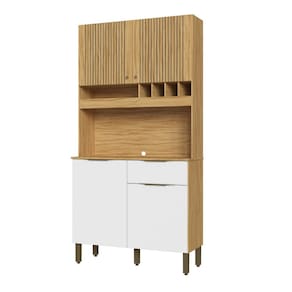 Possui gaveta com corrediça telescopica e prateleira, espaço para microondas, nicho decorativo e adega, possui puxador e pés em ABS com regulagem. Ideal para ambientes compactos e que precisam ser funcionais e organizados.
