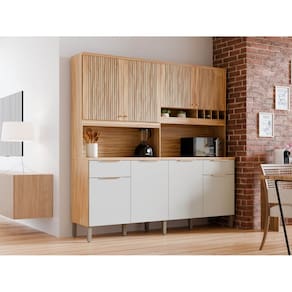 Possui gaveta com corrediça telescopica, prateliras, espoço para microondas, adega, puxador em ABS e pés em ABS com regulagem.